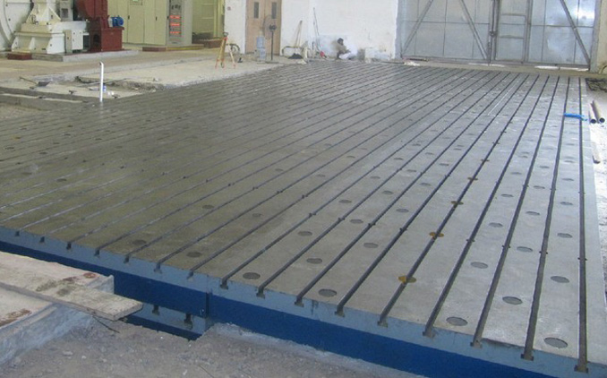 我公司為青島天藍(lán)化工廠設(shè)計(jì)制造的1500×3000mm焊接平臺(tái)8塊產(chǎn)品生產(chǎn)現(xiàn)場(chǎng),焊接平板(焊接平臺(tái))用于鉚焊工藝的基礎(chǔ)平板,工作面上有孔和T型槽,孔主要用來清理鉚焊時(shí)的一些鐵渣和焊接廢棄物,T型槽主要是用來固定焊接件。當(dāng)然,焊接平板也有用平面的,即無孔無槽。