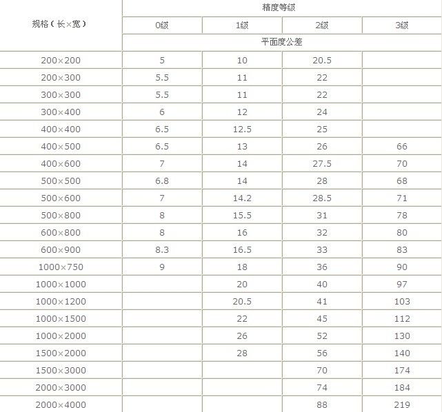 3、精度登記為0級(jí)-3級(jí)的平板工作面上,直徑小于15mm的砂孔允許用相同材料堵塞,其硬度應(yīng)小于周圍材料的硬度。工作面堵塞的砂孔應(yīng)不多于4個(gè),且砂孔之間的間距應(yīng)不小于80mm。